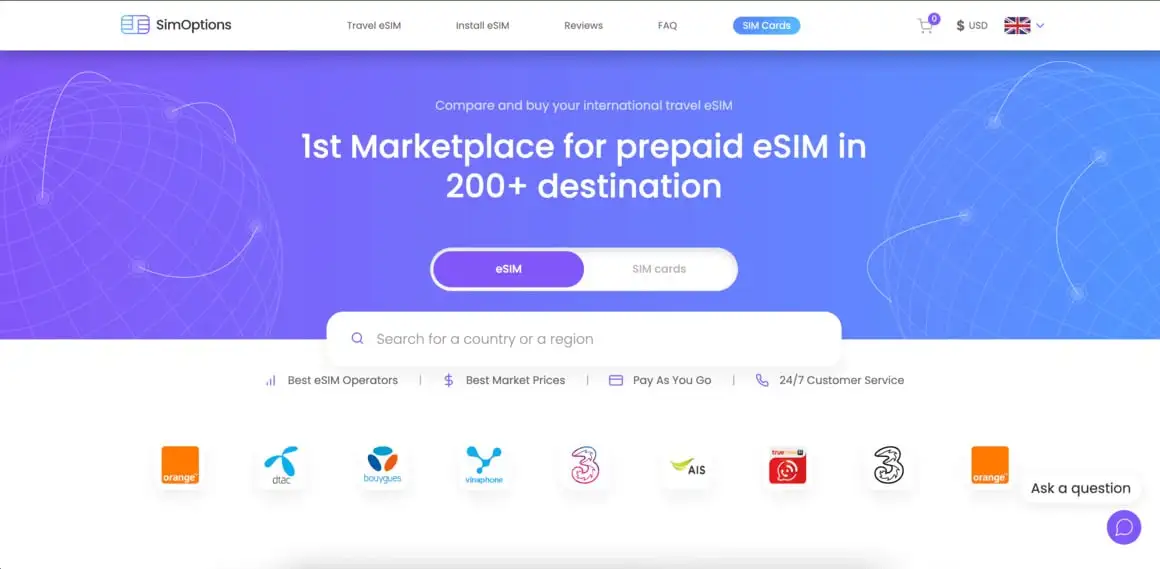 SimOptions é um mercado global respeitável especializado em oferecer eSIMs pré-pagos de alta qualidade para viajantes em mais de 200 destinos em todo o mundo. A plataforma tem se dedicado a fornecer o melhor eSIM possível e sim internacional opções com as taxas mais competitivas para viajantes desde 2018. Eles testam e selecionam eSIMs rigorosamente para garantir que você receba a melhor conectividade e serviço onde quer que viaje.